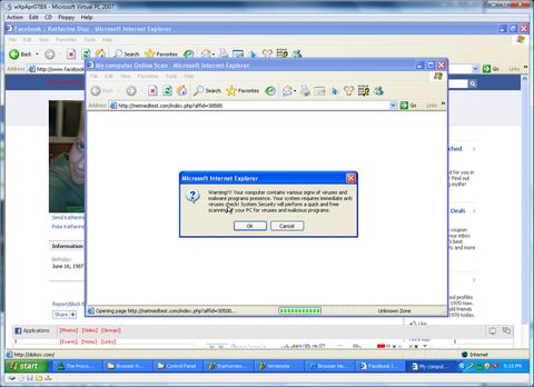 La truffa funziona così: una volta entrati nel sito appare un pop up con un falso avviso (simile a quello del firewall di XP/Vista) che ci avverte che nel nostro PC sono stati rilevati alcuni virus. Il falso antivirus ci chiede perciò di procedere alla scansione. Non fatelo, perchè cliccando su OK verrà scaricato il vero virus, che infetterà il computer.