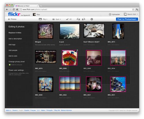 Con l’interfaccia di Flickr cambierà anche il modo di caricare le foto. Il caricamento sarà semplificato dal sistema drag and drop, con il quale basterà trascinare un’immagine nell’apposito pop up per avviare l’upload sul sito.