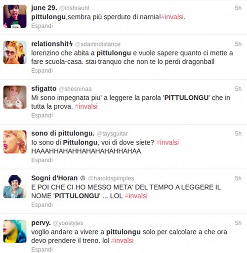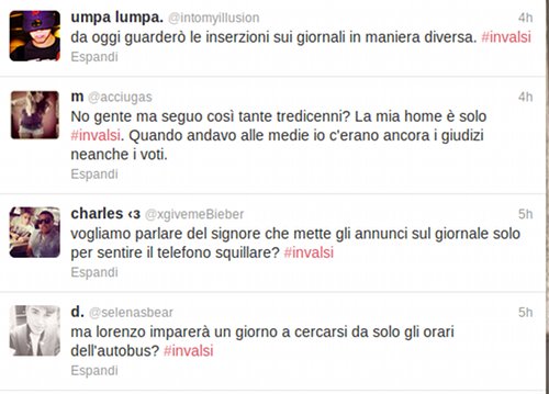 Da qualche ora l’hashtag #invalsi sta spopolando su Twitter, e l’argomento è il più cliccato d’Italia. Infatti la prova nazionale per gli studenti di terza media, nota proprio come test Invalsi ha generato una pioggia di commenti sul microblog. E a leggerli sembra che le domande di matematica e italiano piovute sul capo di circa 600 mila studenti abbiano provocato più ilarità che paura, per l’assurdità dei quesiti proposti.
