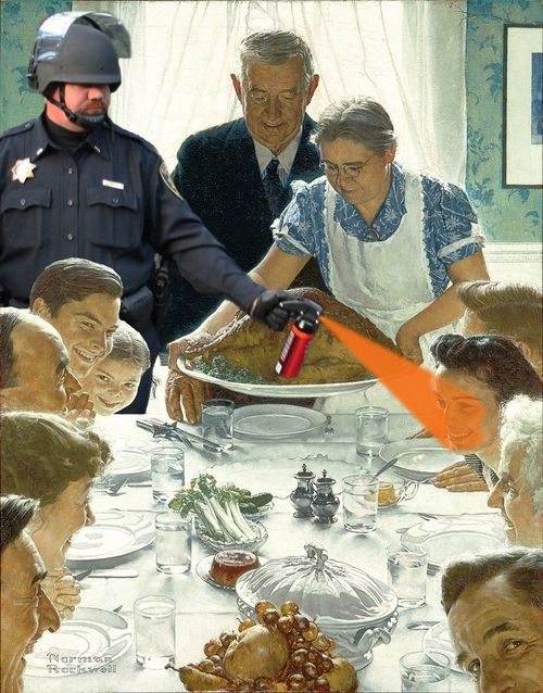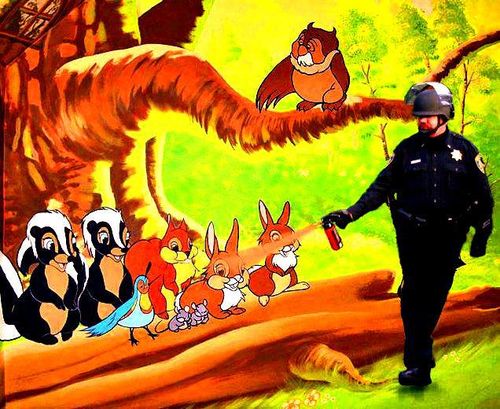 Naturalmente il poliziotto spruzzatore non immaginava che qualcuno lo avesse ripreso con la videocamera, ma soprattutto non poteva sospettare che da lì a poco sarebbe diventato proprio lui il nuovo Meme che spopola su Facebook  in irriverenti fotomontaggi, che trovate dopo il “salto”.