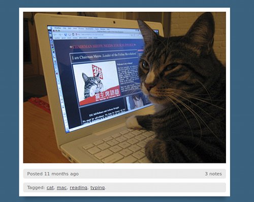 Celebrati su Facebook con pagine a loro dedicate, adesso i gatti sembrano aver ‘colonizzato’ anche la piattaforma di Tumblr, dove possiamo contare un gran numero di Tumblog dove i mici sono protagonisti, alcuni davvero originali.