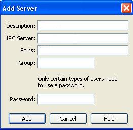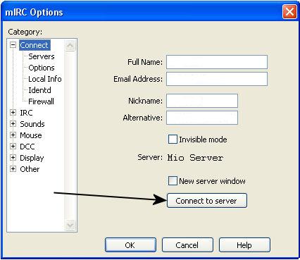 In IRC Server i dati di accesso al Server (solitamente irc.nomeserver.xxx)