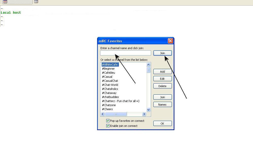 Comincieranno a scorrere i testi di host qualora il server sia corretto fino a che dovrà scegliersi il canale dove chattare: