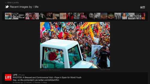 Le ultime foto vengono mostrate sul nostro profilo, mentre se clicchiamo su “visualizza tutto” si apre una pagina archivio ottimizzata per la nostra fotogallery (la grid view), in grado di mostrare fino a 100 immagini, con l’eventuale tweet a cui sono associate.
