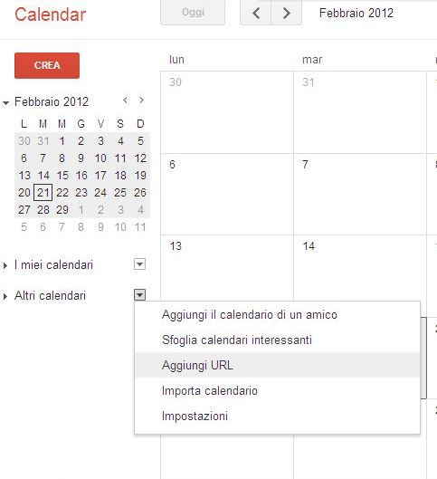 4. Copia l’URL e vai al tuo Google Calendar. A sinistra dello schermo trovi la voce “Altri calendari”.