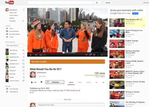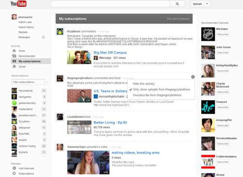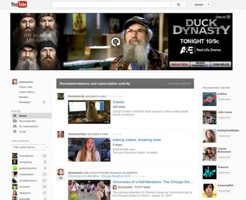 Il cambiamento più rilevante riguarda le barre verticali, in particolar modo quella di sinistra, che ora mette in primo piano i canali consigliati all’utente. Sembra che YouTube stia spingendo molto sui Recommended Channels più che sui Recommended Videos, per invogliare maggiormente gli utenti ad iscriversi ai suddetti canali.